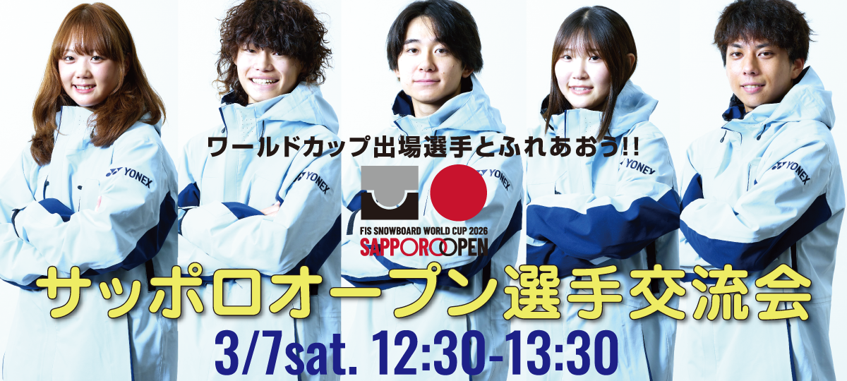 3/7(土)男女予選日程の変更により、FISスノーボードワールドカップ2026 サッポロオープン観戦を楽しみにしていた皆様方への選手からのプレゼントとして、本大会に出場しているトップボーダーたちと間近で交流できるサプライズイベントを開催いたします!